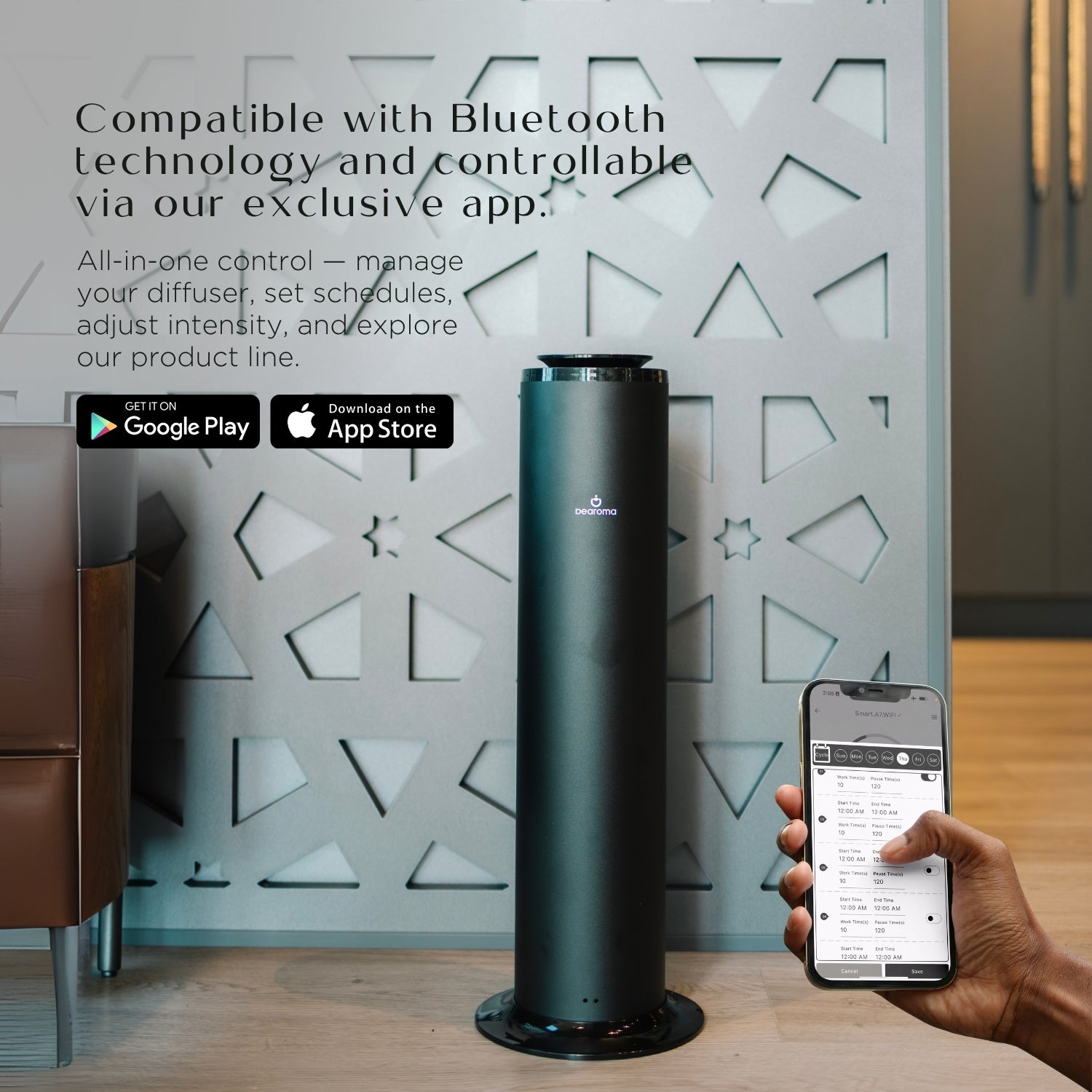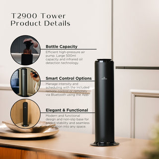 Immerse yourself in a world of enchanting fragrances with the T2900 Tower. Its innovative cold-air perfume spray system delivers a cleaner, longer-lasting aromatic experience without water or heat. Crafted with precision, this scent diffuser features an advanced turbo pump for rapid spraying, ensuring every corner of your space is enveloped in captivating scents. Experience the perfect fusion of technology and elegance!