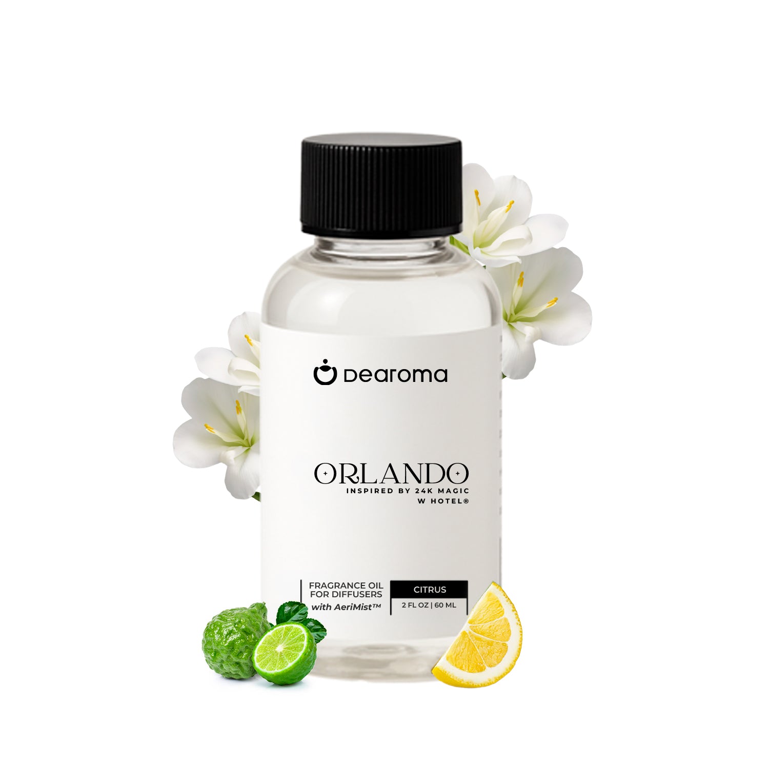 Mistura de essências da DEAROMA, com a inovadora base AeriMist™ , que regula a liberação de partículas aromáticas para proporcionar uma difusão suave, contínua e duradoura.
